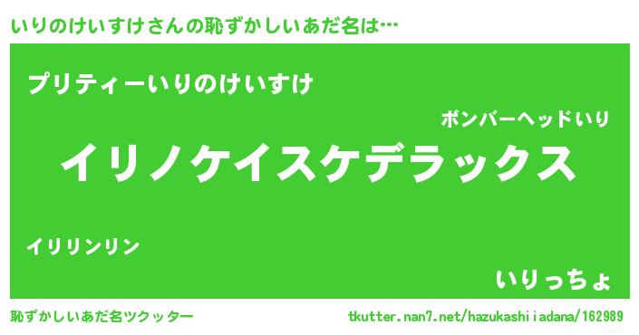 | 意味不明あだ名 | 『自称いりのけいすけ』 |
