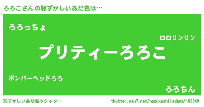 | ヘコむあだ名 | 『ろろにー』『豆乳』『ろろこ(笑)』 |