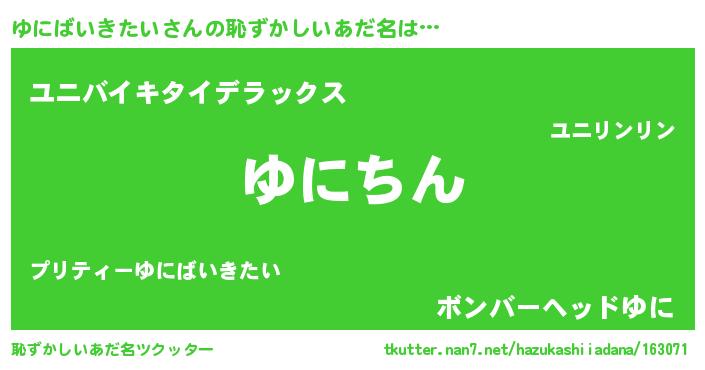 | ヘコむあだ名 | 『ゆにばいきたい(笑)』『ゆにぷりん』 |