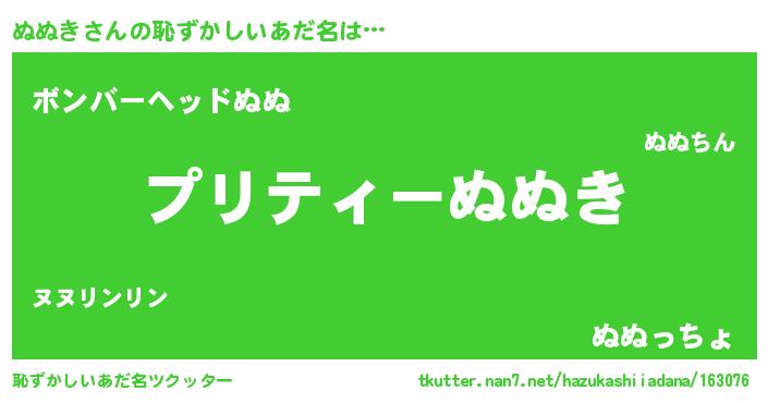 | ポケモン風あだ名 | 『ヌヌチュウ』『ヌックウザ』 |