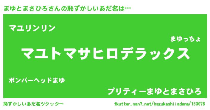 | 欧米人風あだ名 | 『ケンブリッジまゆとまさひろ』 |