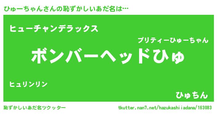 | ヒーロー風カッコイイあだ名 | 『仮面ヒュダー』『愛の使者ひゅーちゃん』 |