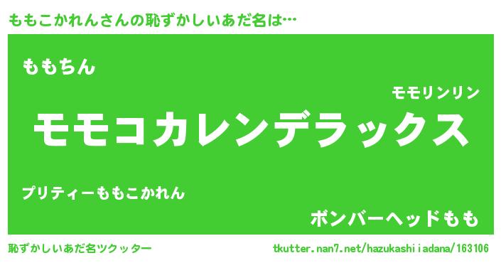 | ヘコむあだ名 | 『ももこかれん(爆)』『もも太郎』 |