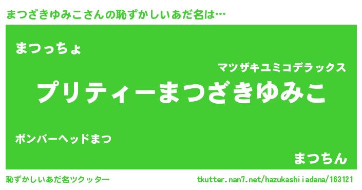 | ヒーロー風カッコイイあだ名 | 『仮面マツダー』『ネオマツザキユミコ』 |