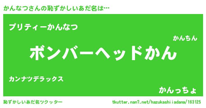 | 男性向けラノベタイトル風あだ名 | 『緋弾のカンナツ』『魔弾の王とかんなつ』 |