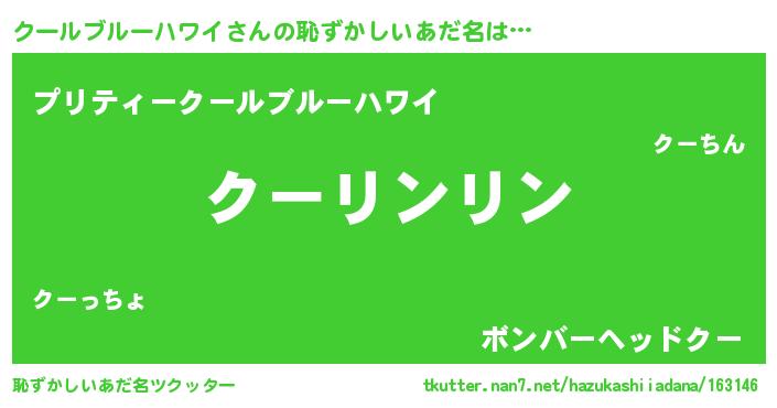 | 意味不明あだ名 | 『とにかく怪しいクールブルーハワイ』 |