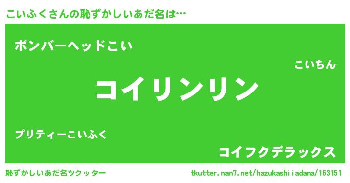 ヘコむあだ名 | 『こいを』『こいふく(笑)』『牛乳』 |