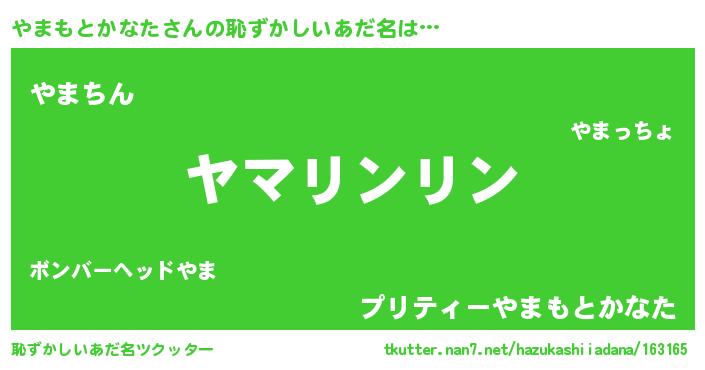 | 男性向けラノベタイトル風あだ名 | 『やまもとかなたの嫁は女の子じゃないと思った?』 |