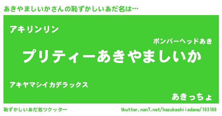 | 意味不明あだ名 | 『住所不定無職あきやましいか(40歳)』 |