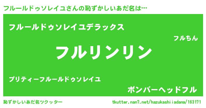 | ヘコむあだ名 | 『フルっ子』『フルールドゥソレイユ(笑)』 |