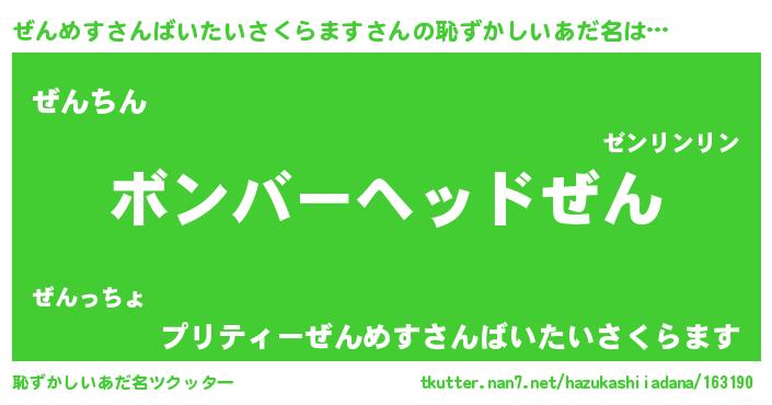 | ヘコむあだ名 | 『ぜんめすさんばいたいさくらます(笑)』 |