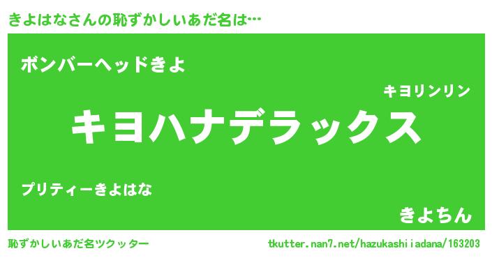 | 男性向けラノベタイトル風あだ名 | 『Re:きよはなから始める異世界生活』 |