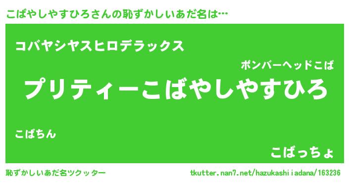 | ヘコむあだ名 | 『こばっふぃ~』『なまこ酢』 |