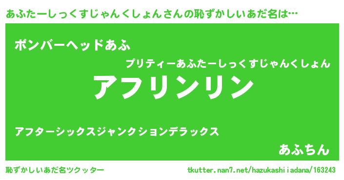 | ヒーロー風カッコイイあだ名 | 『天弓騎士アフ』『仮面アフダー』 |