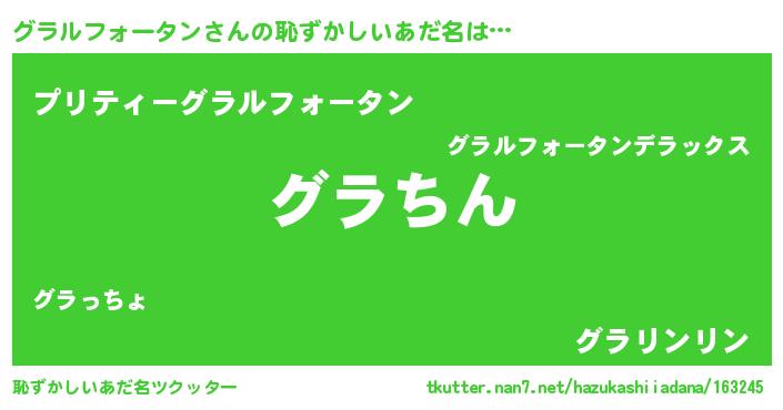 | ヘコむあだ名 | 『グラルフォータン(小並感)』『グラふぇ~』 |