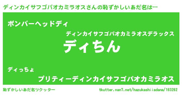 | ヘコむあだ名 | 『ディンカイサフゴパオカミラオス(小並感)』 |
