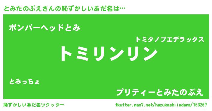 | 胡散臭い通販商品みたいなあだ名 | 『信頼と実績のサプリメント…その名も「とみたのぶえ」』 |