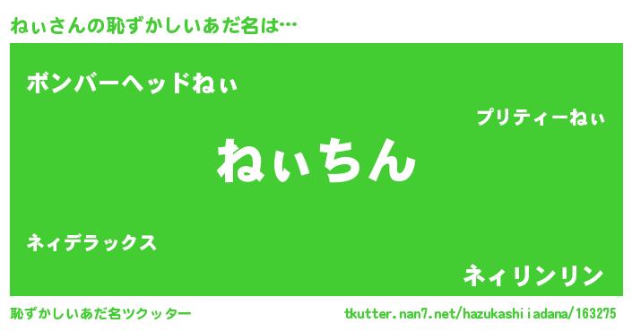 | ヒーロー風カッコイイあだ名 | 『ネオネィ』『正義の使者ねぃ』 |