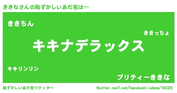 | ヘコむあだ名 | 『ききな(爆)』『ききにー』 |