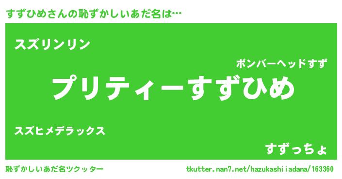 | 欧米人風あだ名 | 『マイケルすずひめ』『ウサインすずひめ』 |