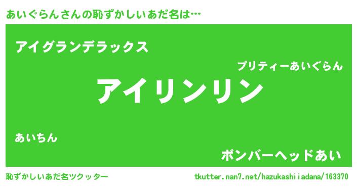 | 胡散臭い通販商品みたいなあだ名 | 『全米が絶賛したサプリメント…その名も「あいぐらん」』 |