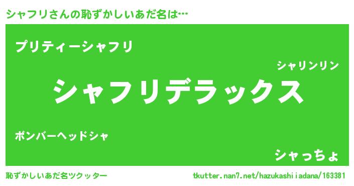 | 女子向けラノベタイトル風あだ名 | 『シャフリアンティーク』 |