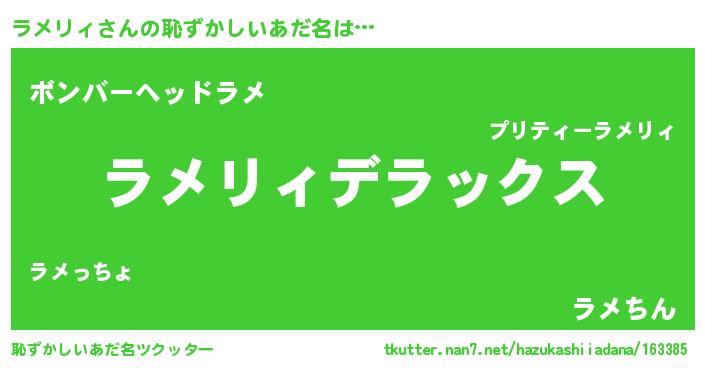 | ヘコむあだ名 | 『ラメリィ(震え声)』『ラメもー』 |