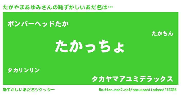 | 意味不明あだ名 | 『たかやまあゆみフォーエバー』 |