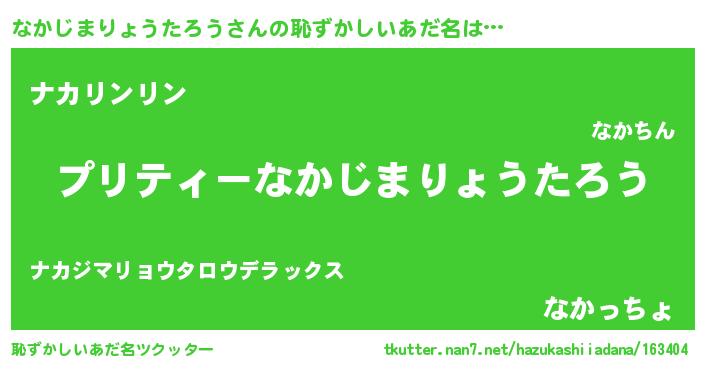 | 意味不明あだ名 | 『住所不定無職なかじまりょうたろう(74歳)』 |