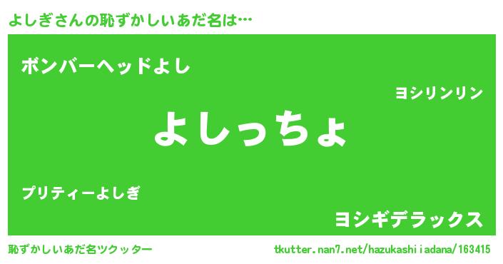 | 意味不明あだ名 | 『よしぎフォーエバー』『自称よしぎ』 |