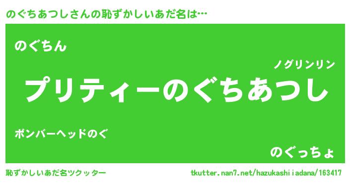 | ヘコむあだ名 | 『のぐにー』『のぐちあつし(遠い目)』 |