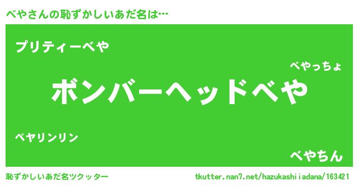 | ヘコむあだ名 | 『べやもー』『べや(遠い目)』『豆乳』 |