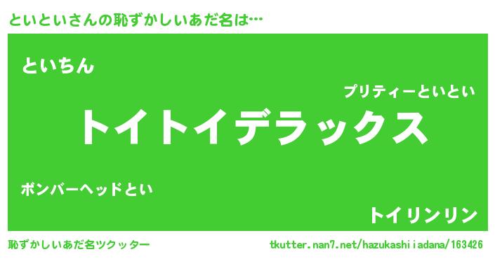 | ヒーロー風カッコイイあだ名 | 『サイバー戦士トイトイ』『ネオトイトイ』 |