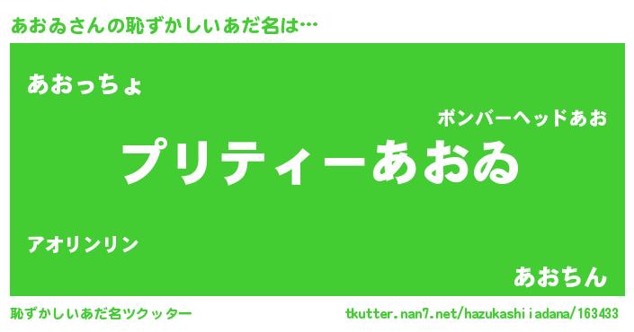| ヒーロー風カッコイイあだ名 | 『仮面アオダー』『スーパーアオヰ』 |