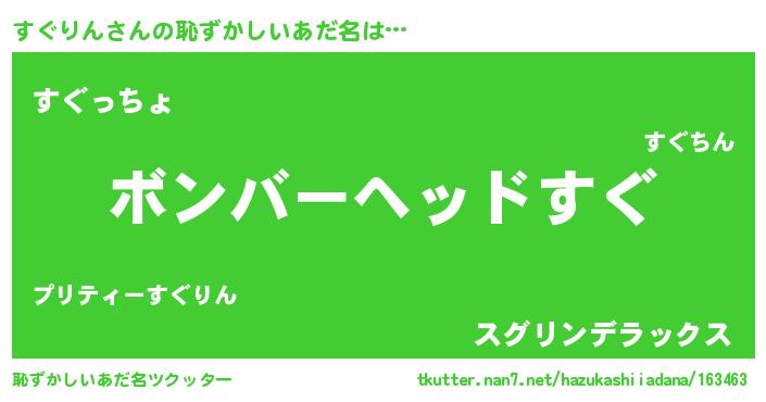 | ヘコむあだ名 | 『酢こんぶ』『すぐりん(震え声)』 |