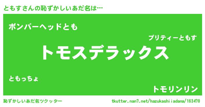 | ヒーロー風カッコイイあだ名 | 『究極戦士トモス』『慈愛の使者ともす』 |