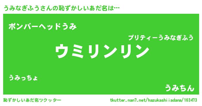 | ヘコむあだ名 | 『うみっぺ』『うみなぎふう(笑)』 |