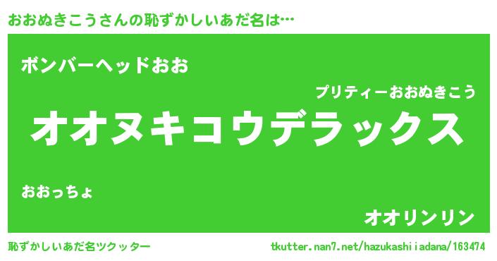 | 意味不明あだ名 | 『住所不定無職おおぬきこう(5歳)』 |
