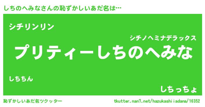 | 意味不明あだ名 | 『ペロリンしちのへみな』 |