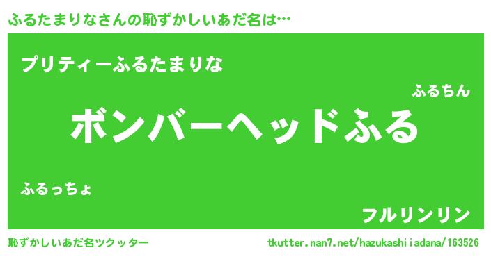 | 男性向けラノベタイトル風あだ名 | 『転生したらふるたまりなだった件』 |