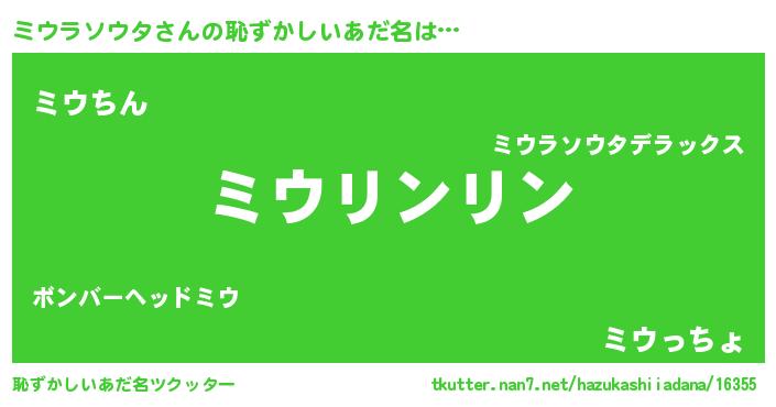 | 男性向けラノベタイトル風あだ名 | 『ミウラソウタの嫁は女の子じゃないと思った?』 |