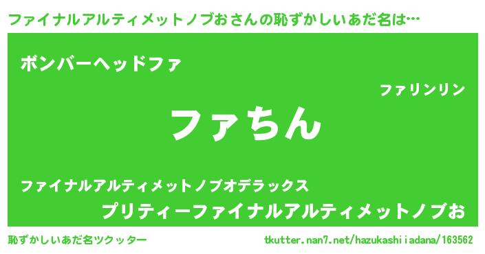 | ヘコむあだ名 | 『ファイナルアルティメットノブお(遠い目)』 |