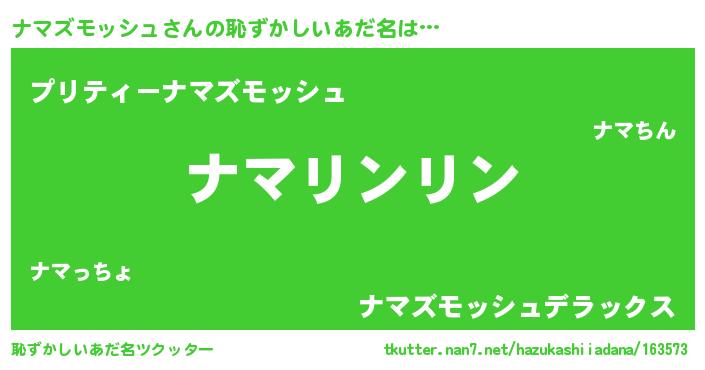 | 意味不明あだ名 | 『住所不定無職ナマズモッシュ(1歳)』 |
