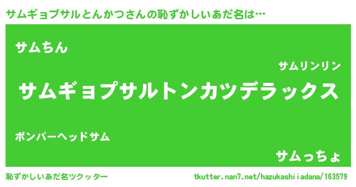 | 意味不明あだ名 | 『自称サムギョプサルとんかつ』 |