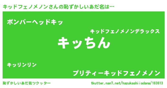 | 意味不明あだ名 | 『永久保存キッドフェノメノン』 |
