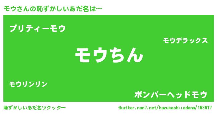 | ポケモン風あだ名 | 『ゼニモウ』『モウチュウ』『ヒモウ』 |