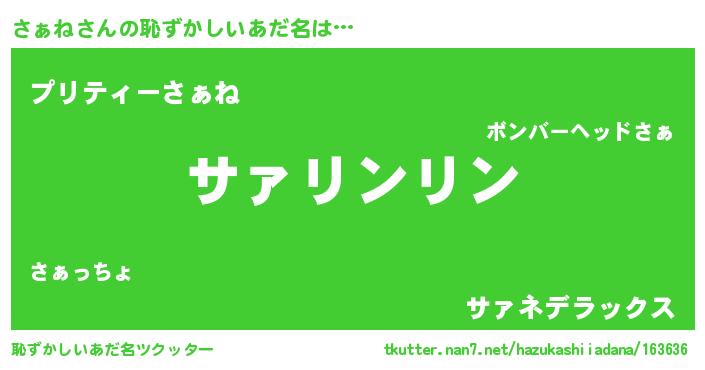 | ヘコむあだ名 | 『さぁっ子』『さぁにー』『なまこ酢』 |
