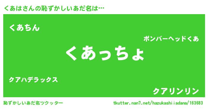 | ヒーロー風カッコイイあだ名 | 『ウルトラくあはマン』『ネオクアハ』 |