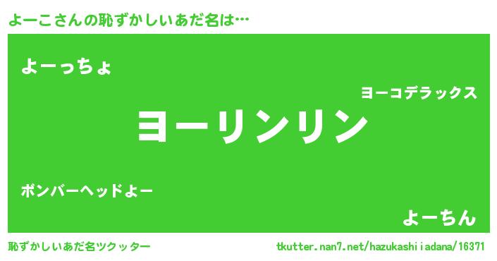 | 意味不明あだ名 | 『とにかく怪しいよーこ』『自称よーこ』 |