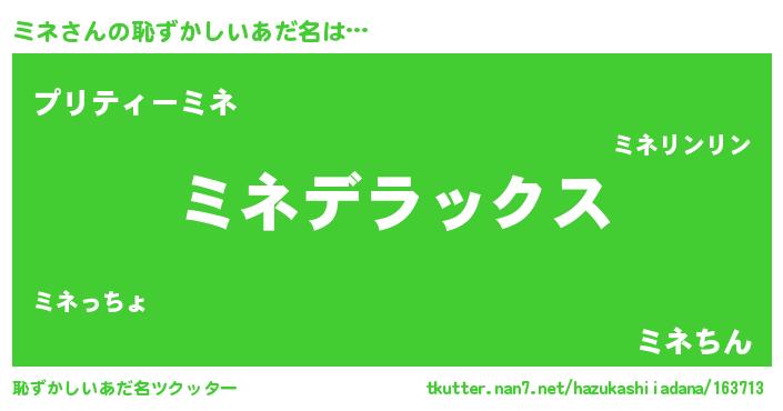 | ヘコむあだ名 | 『ミネっふぃ~』『ミネ(笑)』『豆乳』 |